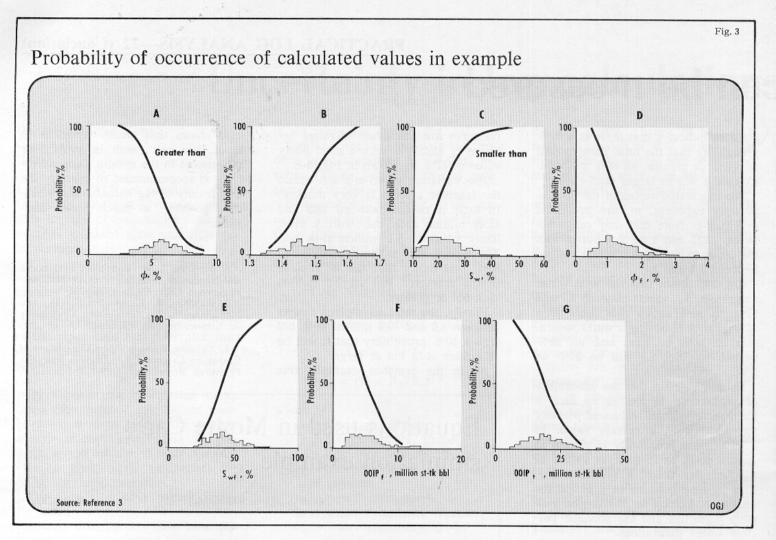 Because log analysis is based upon empirical relationships, the results of log analysis involve considerable uncertainty. The amount of uncertainty can be measured quantitatively using Monte-Carlo simulation.